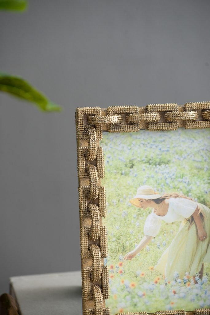 Showcase your favorite memories in timeless style with the Gilded Link Chain Photo Frame. Featuring a bold gold link chain border, this frame strikes the perfect balance between classic elegance and modern design. Its versatile look complements both traditional and contemporary décor, making it a beautiful addition to mantels, bookshelves, or bedside tables. Perfect on its own or styled with other frames, it turns every photo into a statement piece.