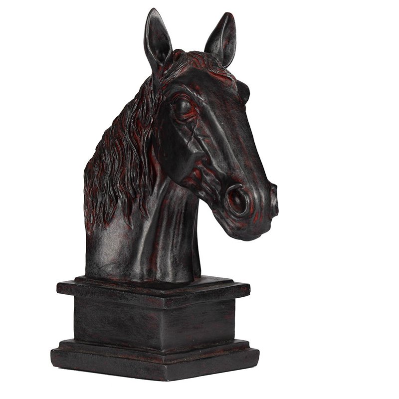 Transforming the powerful beauty of nature into a striking statement piece, this horse bust features a tiered pedestal base, a bold black finish, and subtle red undertones. Whether displayed alone or as part of a commanding vignette, it is sure to draw the eye from any mantel, tabletop, sideboard, or kitchen island.