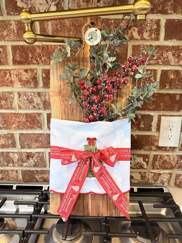 • Wooden Charcuterie Board – A rich, natural wood serving board perfect for creating cozy cheese and charcuterie spreads during seasonal gatherings.