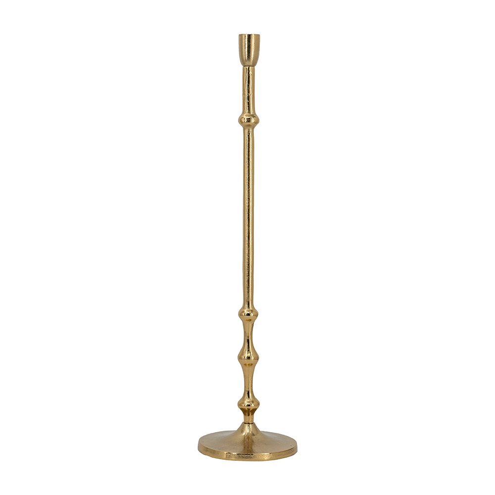 With its slender, simple silhouette, warm bronze finish, and distinctive bead-like accents across the body, this pedestal candle holder will infuse your home decor with a burst of transitional style. Whether displayed individually or as part of a classic-themed ensemble, it will spread a soothing glow through your space when paired with a single taper candle.