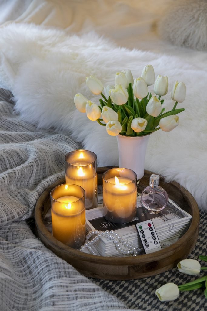 A set of three realistic flameless LED candles with remote control for effortless ambiance.
